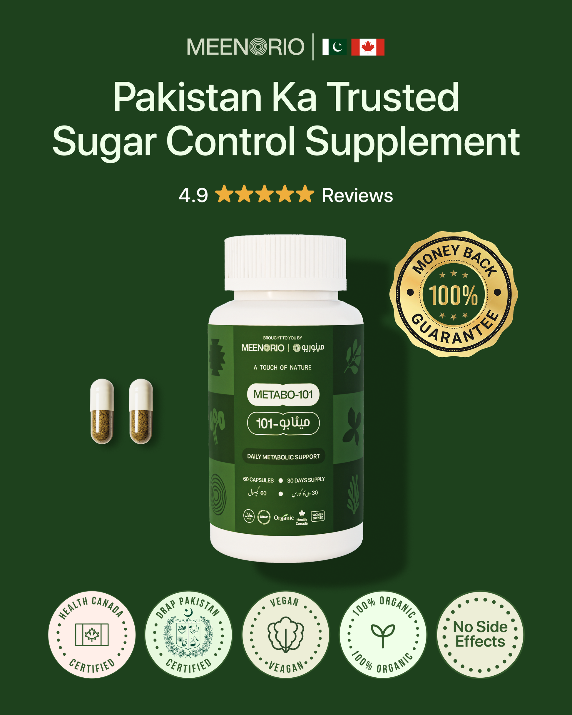Metabo-101 is a 100% natural wellness supplement made with modern science and international standards to support daily sugar control for people with diabetes and pre-diabetes.